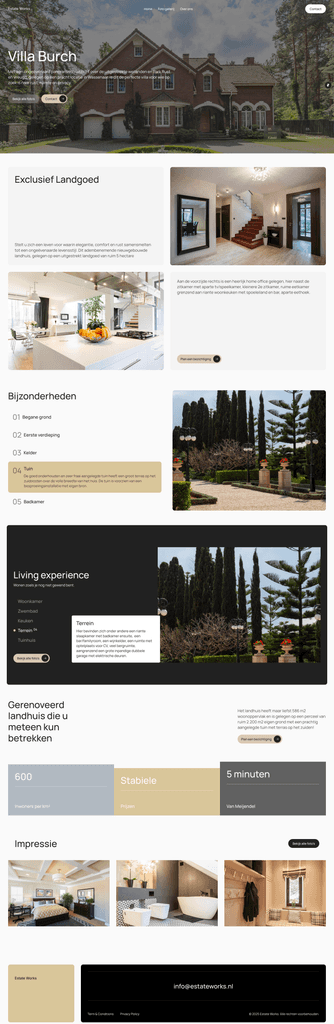 Bekijk een voorbeeld van hoe uw exclusieve object gepresenteerd kan worden. Onze websites zijn ontworpen om de aandacht volledig te richten op de woning en potentiële kopers een meeslepende ervaring te bieden.